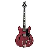 The Hagstrom Select Series, Vintage Series, and UltraLux Series guitars recapture the original glorious Hagstrom style.They are built to the same stringent quality standards and feature Hagstrom's exclusive technologies including the legendary H-Expander Truss Rod while introducing a number of new technological advances such as the Resinator Fretboard in order to guarantee that these are the finest guitars on the market.The Vintage Series Tremar Viking Deluxe combines a vintage Hagstrom Vibrato roller bridge with custom hardware to match. This Vibrato hollow body is the ultimate in elegance.The Tremar Viking Deluxe opens up a new dimension of tone, playability and nuance. The Hagstrom Tremar bridge was designed to ensure the perfect tuning and intonation, even under heavy use.The Tremar Viking Deluxe features a Contoured Flamed Maple Body with a Maple Set Neck. The fingerboard is made from Resinator wood with Hagstrom Pearl Block Position Marks. Resinator wood is more stable than any standard wood product. It is the perfect fingerboard material in that it eliminates wolf tones or hot spots, and it has a smooth, articulate sound.The H-Expander Truss Rod provides tension at either end and running the entire length of the neck, and the rigid yet lightweight alloy truss rod allows for a very low action and thin neck, two factors that were instrumental in earning Hagstrom its reputation as the world's fastest playing guitar.Other features are: Hagstrom 18:1 die cast tuning keys, 24.75 inch scale length, a 3-way toggle, a Tremar Vibrato with Tremar Roller Bridge, 2 x volume/ 2 x tone, and 2 x Hagstrom HJ-50 Humbuckers.